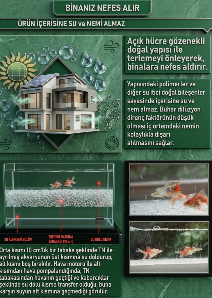 Thermonatural inorganik esaslı, granülometrik yalıtım malzemesi, mineral dolgu maddeleri içeren özel katılarla modifiye edilmiş ISI, SES, SU(Destekleyici ürün) ve YANGIN izolasyonu sağlayan özel bir dış ve iç cephe sıvadır.